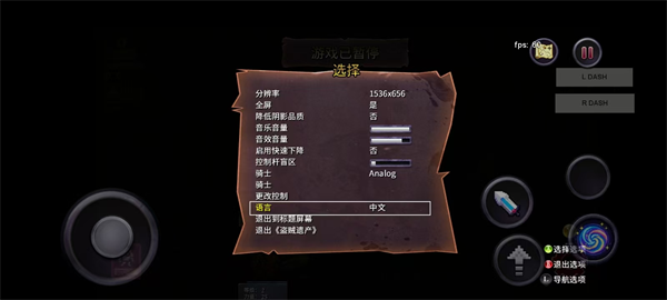③使用移动摇杆向下滑动到语言栏,再往右滑动锁定Chinese中文模式;