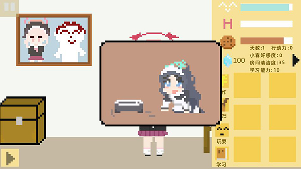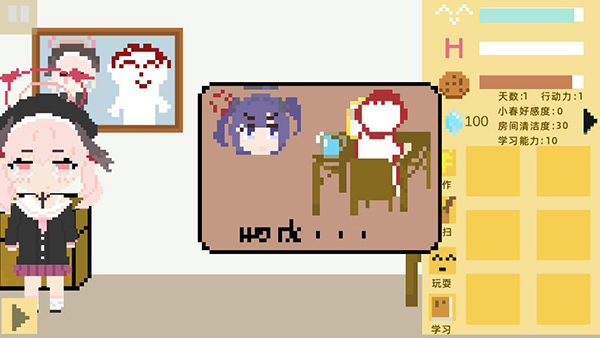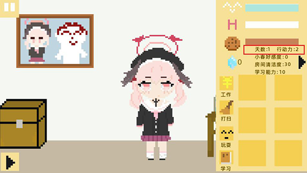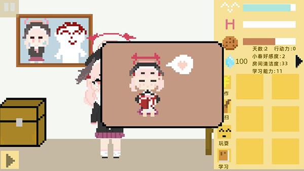 4、打扫卫生可以提高房间清洁度,一个好的环境可以防止小春心情值快速降低哦