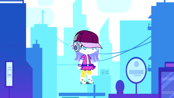 女性角色,蓝色头发,有一对猫耳,穿着蓝色短袖上衣,黄色短裤,戴着白色手套,在卡牌中是校服,性格比较开朗。