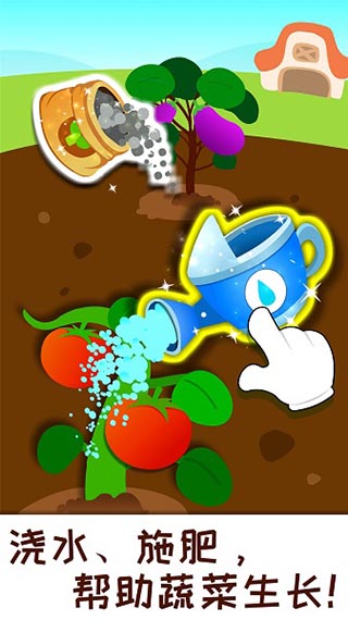 8类蔬菜水果种子多多纳入到游戏中,定时给宝宝梦幻花园浇水施肥、驱赶小虫子和小鸟,真实体会劳动的辛苦!