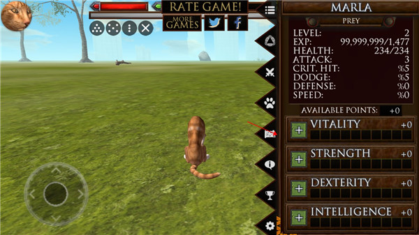 - 角色养成:升级解锁属性点(速度、攻击力、生命值),自定义毛色、斑纹。