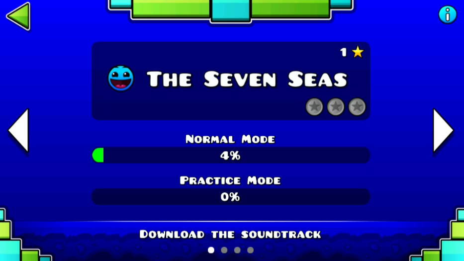 4、新手推荐先从前几关节奏较慢、障碍清晰的关卡熟悉跳跃手感,了解各种地形机制(如三角刺、翻转地面、传送门等)。