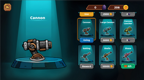2、点击左边的武器图标选项,我们可以在这里购买各种强大的武器装备;