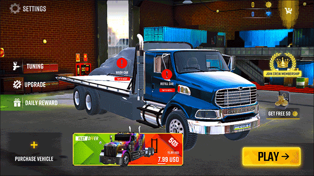 2、想要解锁出来更多的卡车类型,就需要完成更多的任务挑战,这样玩家才可以驾驶不同的卡车类型进行体验。