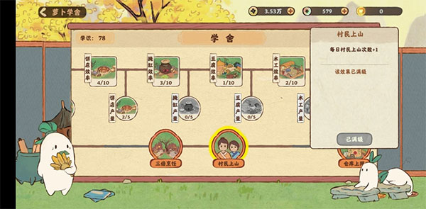 萝卜学舍可以解锁村民上山次数+1。