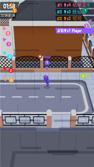 1、开局要迅速找到小白人,只要靠近小白人,小白人就会被染成和你人物相同的颜色,你的队伍就壮大了。
