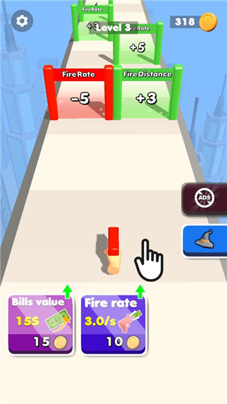 3、穿过绿色的门槛可以按照下面的数字新增钞票;