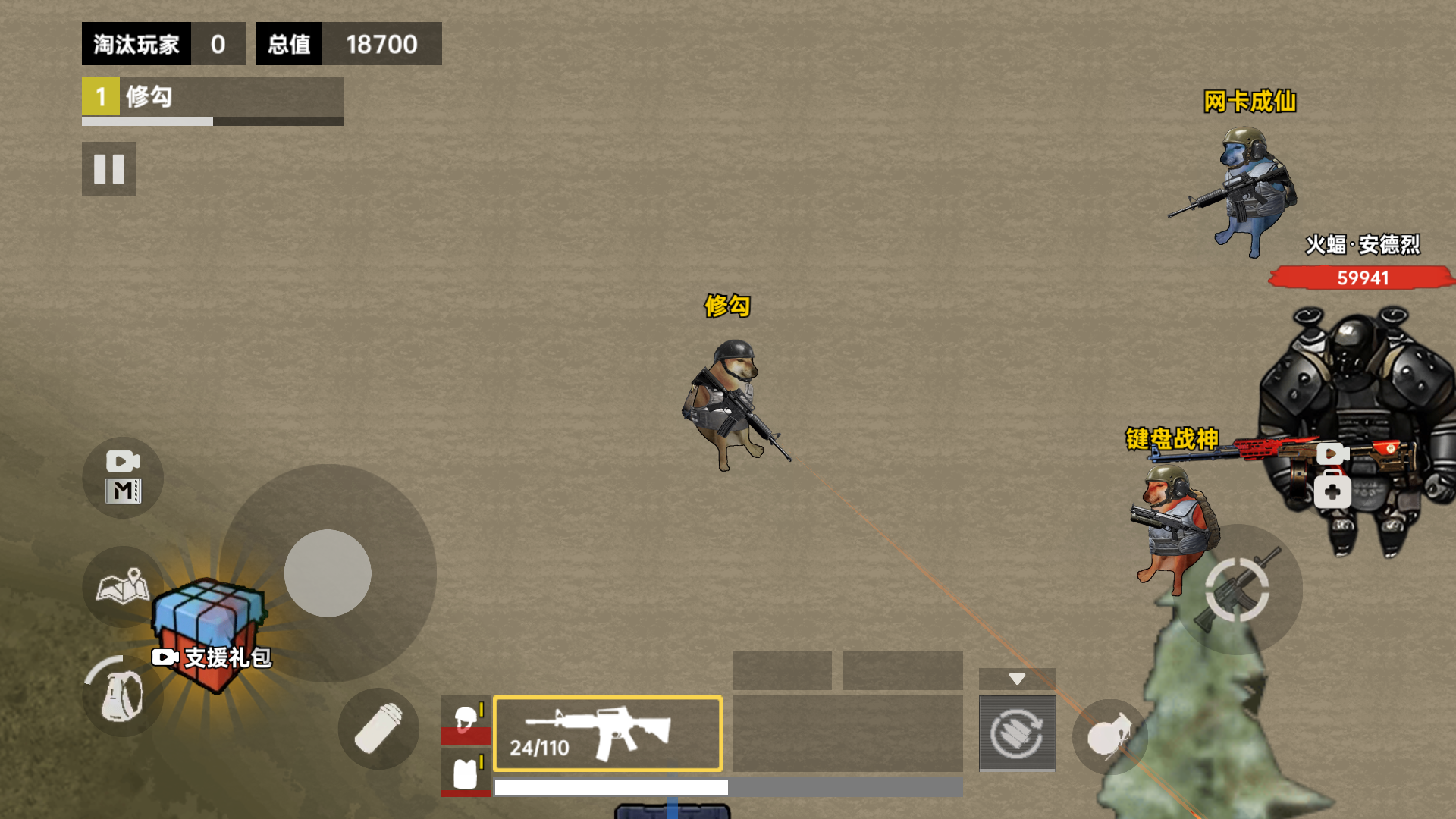 修狗专属技能:翻滚闪避子弹、狂吠震慑敌人3秒(冷却45秒),强化角色个性。