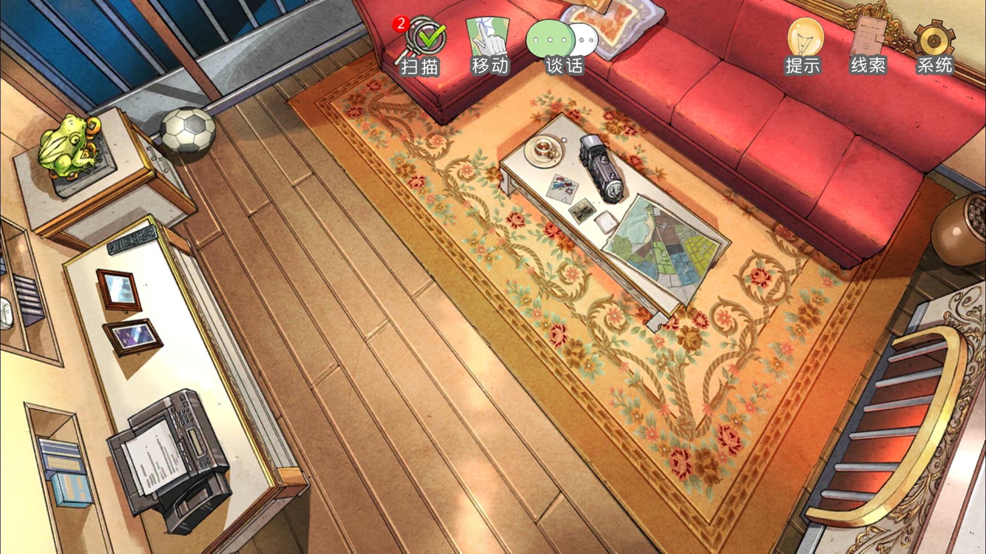 1、椅子下面得到【红色小球】,调查书架,得到【白羊座硬币】【铁十字】。