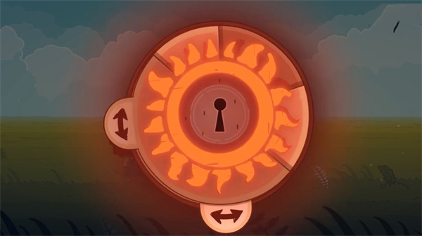 6、返回门的位置,使用钥匙后需旋转门上的图案,直至所有部分变为红色,即可成功开启大门。