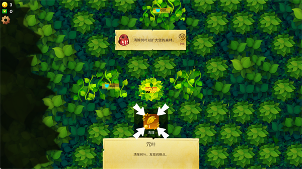 1、下载并安装好彩翼蝴蝶保护区后打开游戏,跟随教程指引点击冗叶开始清理。