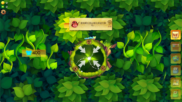 4、当蝶卵孵化成幼虫后玩家需要喂养叶子,只有足够的营养才能让幼虫化茧成蝶。