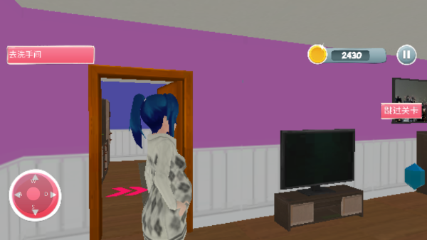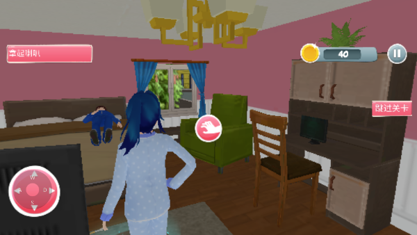 2、跟随主角行动,首先拿起喇叭叫醒女儿和丈夫,开启一天的生活。