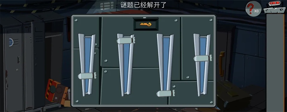 3、取下门口悬挂的【钥匙】,打开旁边的木箱,获得【胶带】;用胶带修复灯泡电线后,灯光投射出密码【7459】,输入该密码即可开启下一扇门。