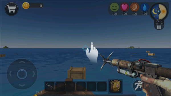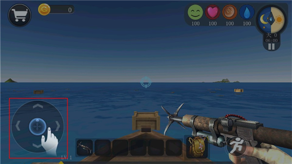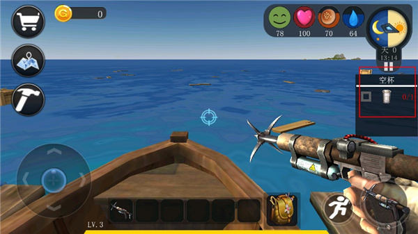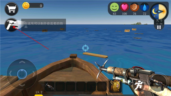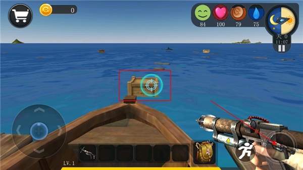 6、瞄准漂浮物品后长按发射钩索,即可将其捕捞至木筏上,这是初期资源积累的主要方式。