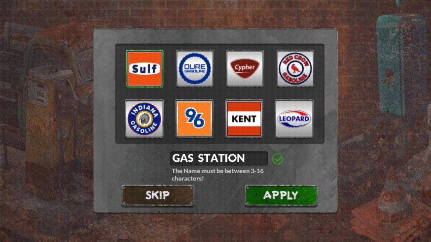 1、首先在本站下载并安装游戏,打开后为你的加油站设定一个独特的名称和专属标志;