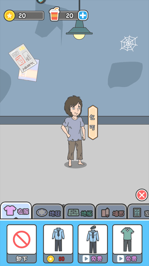 1、游戏采用的是闯关模式,游戏讲述的是创业失败的你流浪街头,想办法赚点钱;