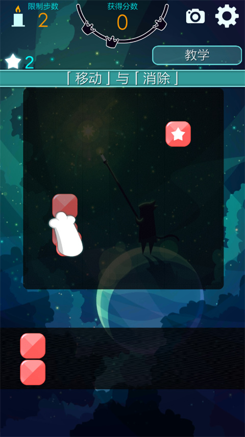 4、快将方块组合并消除,收集你所需的太阳、星星和月亮,帮助Catt勇敢追寻白猫的足迹吧。
