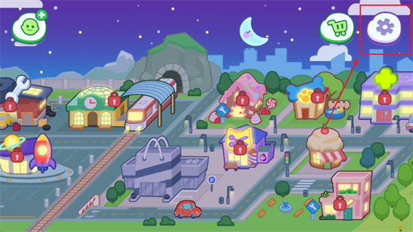 打开汤姆猫小镇游戏,进入后默认为白天,点击上方的太阳