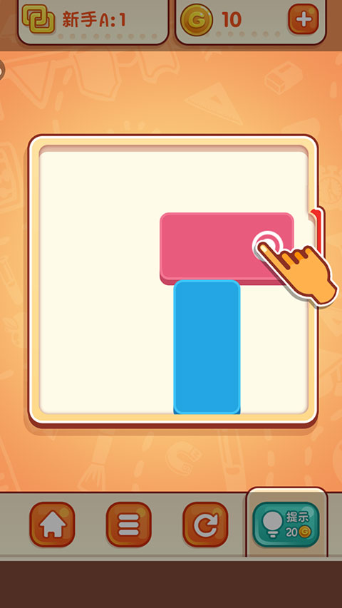 3、逃脱模式下,通过移开障碍方块,使得目标方块顺利到达出口即为胜利。