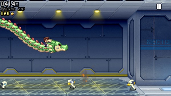 火箭飞人是一款经典的横版飞行跑酷射击游戏。玩家将操控装备喷气背包的主角,在充满危险的工厂中高速穿梭。您需灵活运用机枪扫射前方的邪恶科学家,并通过精准的上下位移,避开固定电闸、旋转电闸、火箭炮及激光光束等致命障碍。沿途收集的金币可用于解锁强力道具与特殊装备,大大丰富了游戏的策略深度与重玩价值,为您带来兼具紧张操作与成长乐趣的爽快体验。