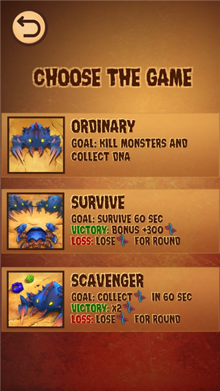 1、在烈日下,一个新的文明发现了它的起源。孢子怪物在这个致命的空地上生存下来并演变而来。有机物对于这个炎热和灭绝的地区太弱了。该解决方案被发现与已灭绝的人类技术共生。怪物的爪子,四肢和身体发生了技术变革。怪物种类的这些转变允许适应不友善的环境。但是这种迅速的演变严重影响了生物的思想,造成了横行,疯狂和愤怒。现在这些生物更加贪得无厌,饥饿难耐。2、在深海沉没中发现的孢子怪物是由细胞实验室的科学家进行基因改造的,现在他们在创造者身上幸存下来。他们更强壮,更生气,更灵活的怪物,然后有。但他们继续演变成高科技加密怪兽。参加激烈的领土冲突,成为可怕的怪物之一。摧毁你的敌人,吸收它们的遗传密码(DNA)并进化,以便控制敢于挑战你的怪物。成为一个怪物,然后自己决定你的新怪物的样子。饲料和种植你自己的战斗怪物。不要让怪物饿死!使用在怪物冲突中收集的遗传密码,并创建一个新的有机体。但请记住,在这个危险的宇宙中,没有空间可供草食动物种类的怪物使用。只有食肉掠食者才能生存和发展。这个地方只供肉食者食用。