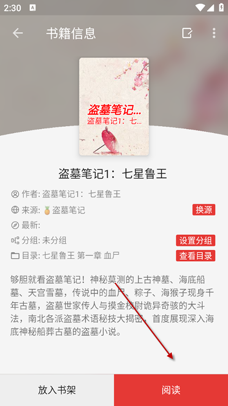 3、找到感兴趣的小说之后,点击“开始阅读”或选择具体章节,即可进入阅读界面。